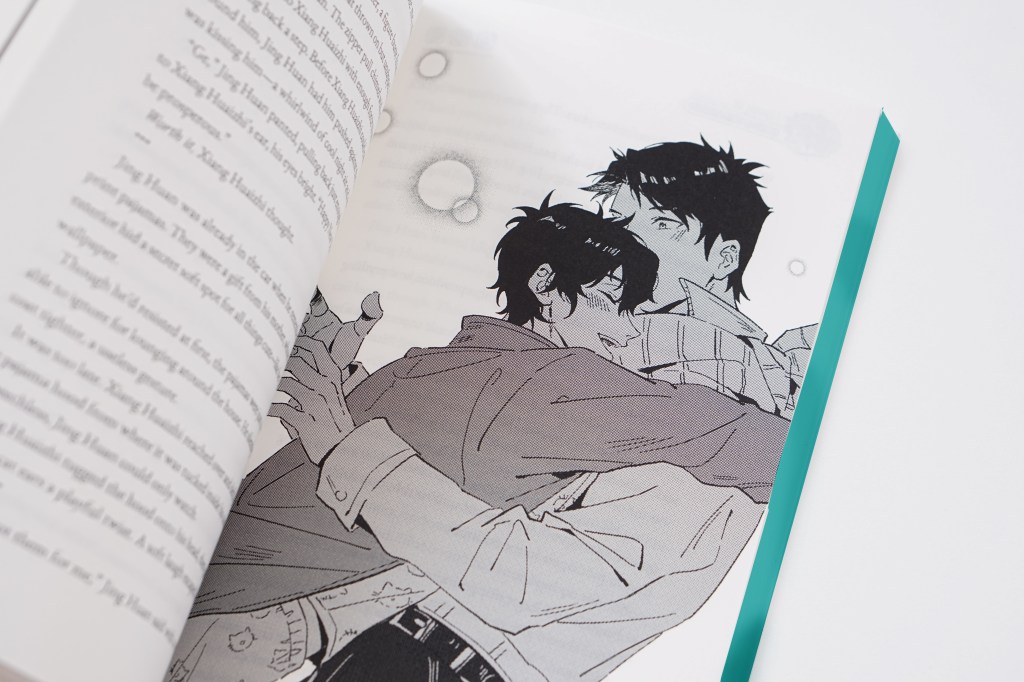 Only then did Jing Huan notice the arm still around his waist. Through the thin fabric of his shirt, he felt the warmth of Xiang Huaizhi’s arm, the firm muscles taut against his body. It felt less like being helped up and more like being swept off his feet.